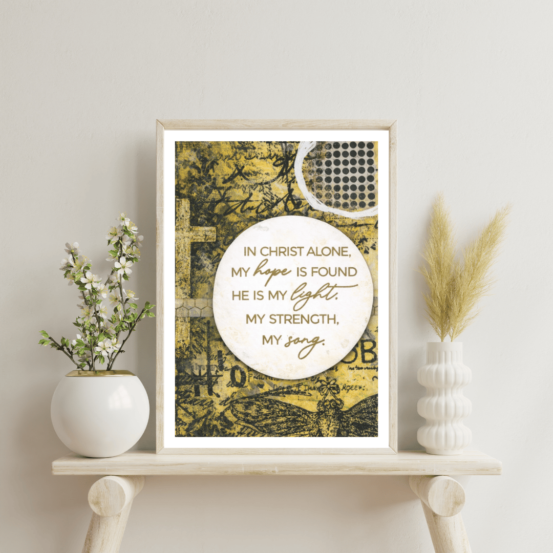 Reprint of my original mixed media artwork “In Christ Alone" printed on 40 lb paper and hand-sealed for a soft matte finish.