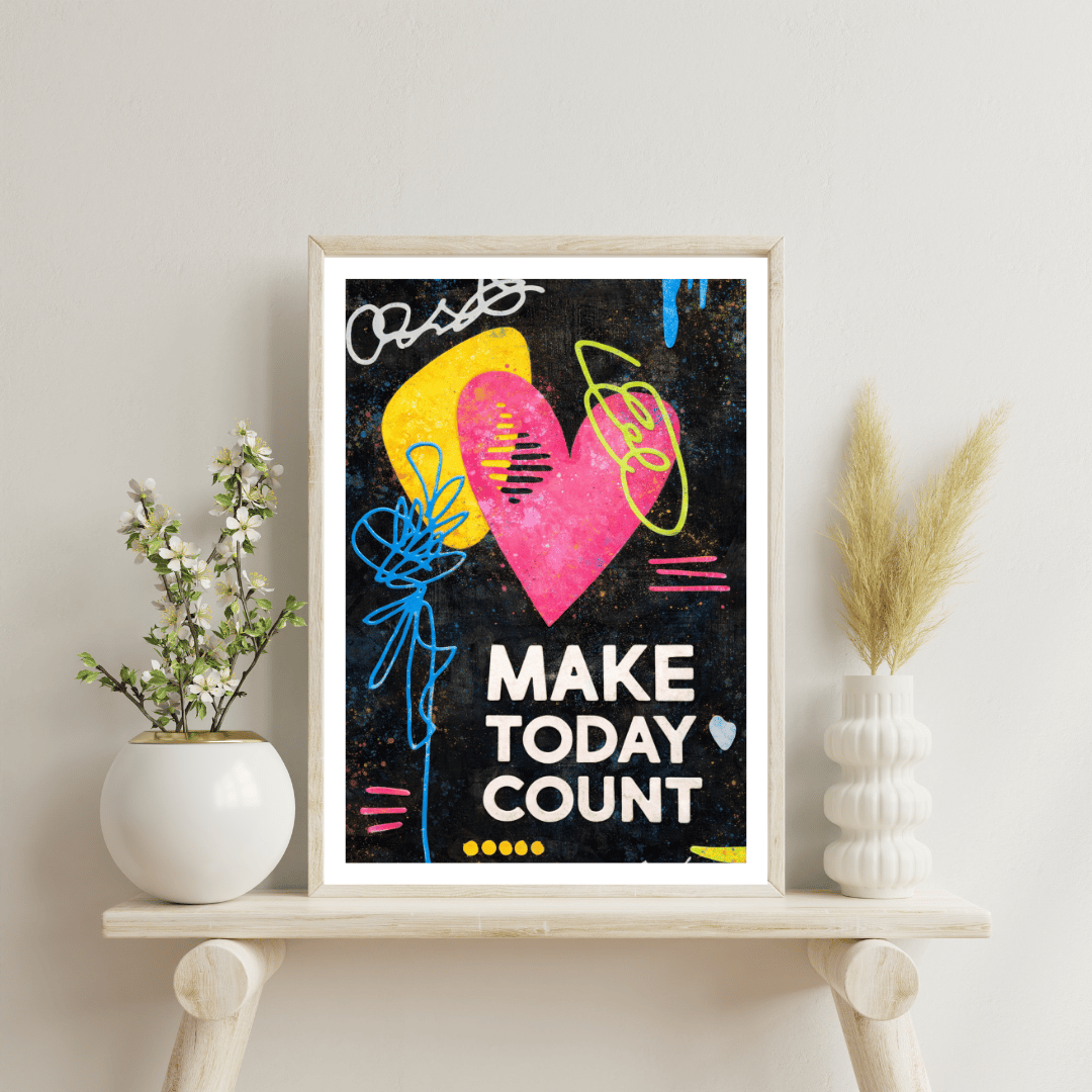 Reprint of my original mixed media artwork “Make Today Count" printed on 40 lb paper and hand-sealed for a soft matte finish.